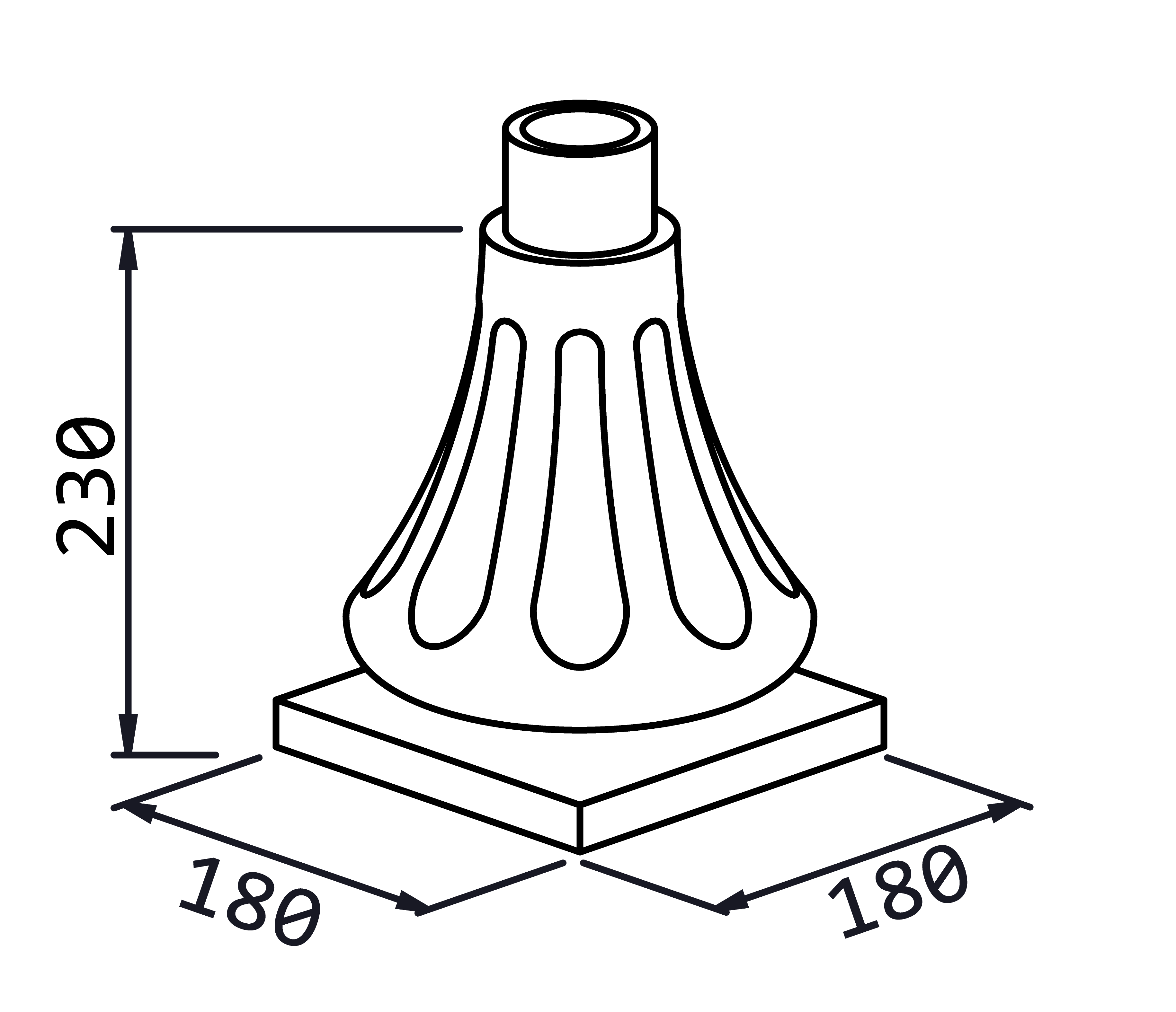 This is one of our most elegant models: a truly classical and 'heritage' base or capital for our decorative columns and pillars in diameter 80 mm (with a fluted or a plain shaft), quite easy to install. It will fit in nearly all styles of architectures, thanks to its timeless design. For verandas, pergolas, patios, kiosks, canopies, gazebos, terraces or porches. It can also be used for indoor decoration or renovation purposes. It will give a real "touch of class" to your realization! Note: please use one of our decorative rings at the junction of this piece and the shaft: it will be much nicer! This is produced in Belgium, in our own aluminium foundry.